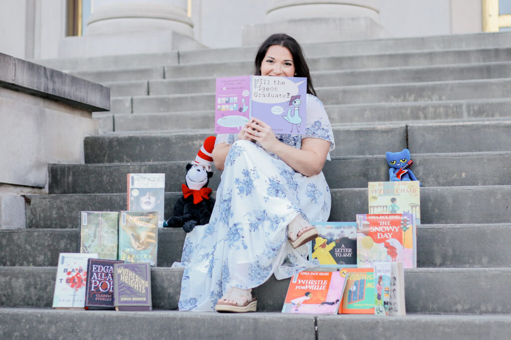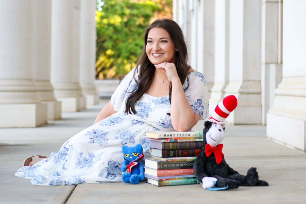 In her graduation photos, Emilee brought along more than just a cap and gown. She included cherished childhood books like A Letter for Amy and Peter’s Chair, a Cat in the Hat doll from her childhood, and a pearl necklace gifted to her by her mother-in-law, Linda – a symbol of love, family, and legacy.